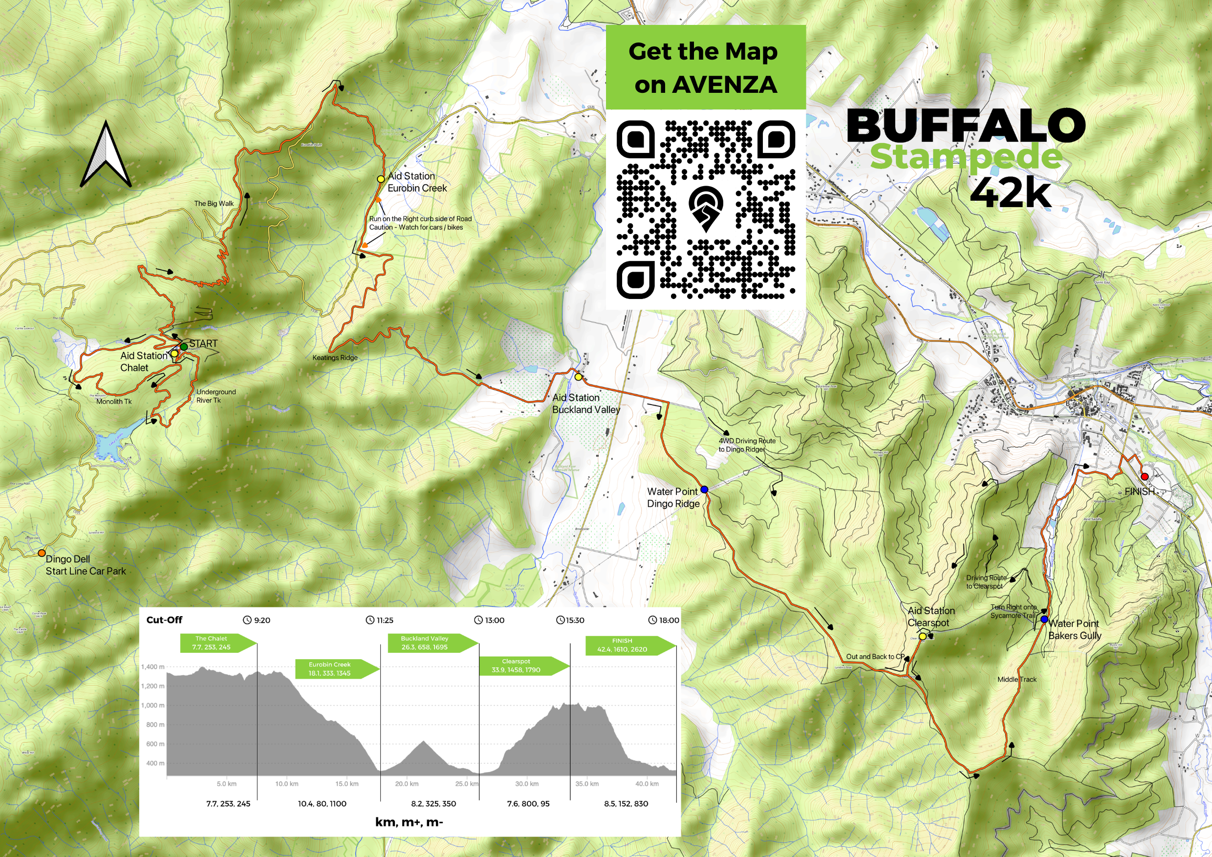It is important that everyone download the AVENZA Map before the Event. Along with having the GPX file in your watch, this is the best thing to allow you to get back on course if you are unsure where you are. Course tampering does happen, or people miss a turn easily in trail running. So you need to have a map to know where you are.